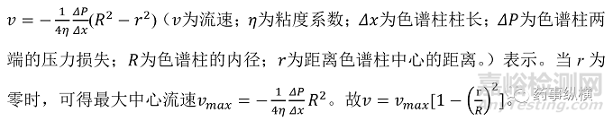 當(dāng)流動(dòng)相在色譜柱中流動(dòng)時(shí),如果不考慮固定相的作用,我們可以假定此時(shí)流動(dòng)相在柱腔做層流運(yùn)動(dòng)。根據(jù)Poiseuille定律[4],此時(shí)流動(dòng)相在色譜柱中的流速分布可以用