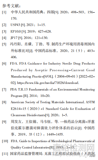 消毒劑廣泛應(yīng)用于藥品生產(chǎn)和檢驗(yàn)環(huán)境,其主要目的是作用于環(huán)境,降低環(huán)境的生物負(fù)載量。因其主要作用于環(huán)境中的微生物,各國(guó)藥典、法規(guī)和指南均要求使用環(huán)境分離菌來(lái)進(jìn)行消毒劑效果的確認(rèn),并且都要求根據(jù)消毒劑類型選擇合適的微生物進(jìn)行考察[5]。