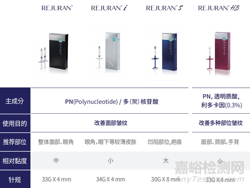 ▲Rejuran®、Rejuran®i,Rejuran®s和Rejuran HB共計4款產(chǎn)品(數(shù)據(jù)來源:PRP)