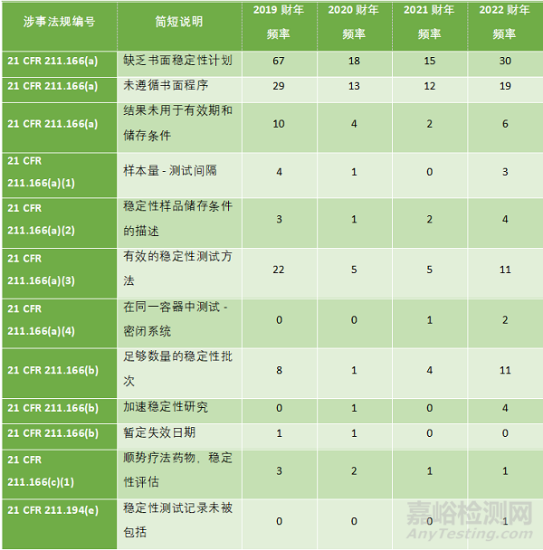 表1. FDA2022財年483表涉及穩(wěn)定性測試的觀察總結