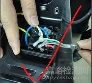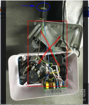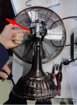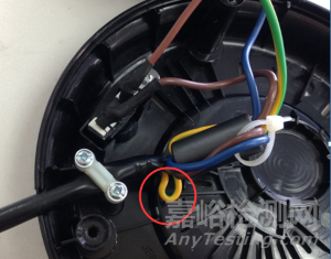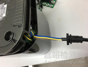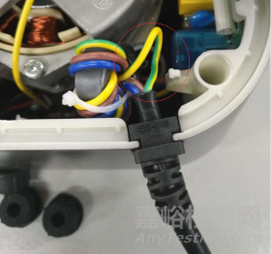 電風(fēng)扇產(chǎn)品,打開產(chǎn)品外殼,在內(nèi)部拉扯電源軟線,如圖7所示。