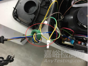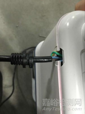 實際結(jié)果是磁環(huán)先卡在外殼上,接地導(dǎo)線先于載流導(dǎo)線被繃緊,不符合GB 4706.1-2005標(biāo)準(zhǔn)27.3條款的要求。