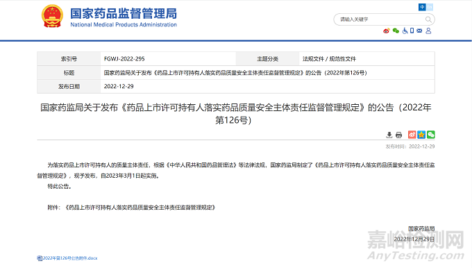 藥品上市許可持有人落實(shí)藥品質(zhì)量安全主體責(zé)任監(jiān)督管理規(guī)定
