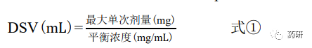 根據(jù)不同時(shí)間點(diǎn)取樣的 HPLC 測定濃度值,繪制時(shí)間濃度曲線,平臺(tái)濃度點(diǎn)(相鄰 2 個(gè)取 樣點(diǎn)濃度相近)即為“平衡時(shí)間”,該時(shí)間點(diǎn)取樣的濃度即為“平衡溶解度”。此外,按式① 分別計(jì)算不同 pH 值緩沖液的溶解度體積(DSV,mL),當(dāng)所有 pH 值條件下的 DSV 均低于 250 mL,則判斷為高溶解性;若某 pH 值條件下的 DSV 高于 250 mL,則判斷為低溶解性。