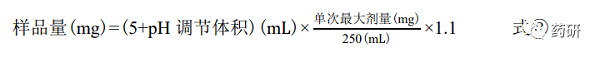 在整個(gè)研究過程中,供試品溶液始終維持在過飽和狀態(tài),對于高溶解性藥物來說,對樣 品量的要求較高。例如在本次研究中,WHO 提供的 3 僅為 0.640 g,這對試驗(yàn)設(shè)計(jì)提出了較 高的要求。本次研究采用不同 pH 值的緩沖液 5 mL,依據(jù)單次最高劑量分別計(jì)算每個(gè) pH 值 條件下的所需樣品量(見式③),從而保證試驗(yàn)結(jié)果的準(zhǔn)確性。