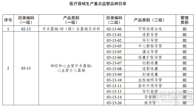 國(guó)家藥品監(jiān)督管理局根據(jù)醫(yī)療器械產(chǎn)品風(fēng)險(xiǎn)程度制定并動(dòng)態(tài)調(diào)整醫(yī)療器械生產(chǎn)重點(diǎn)監(jiān)管品種目錄(見文末);省、自治區(qū)、直轄市藥品監(jiān)督管理部門應(yīng)當(dāng)綜合分析本行政區(qū)域同類產(chǎn)品注冊(cè)數(shù)量、市場(chǎng)占有率、生產(chǎn)質(zhì)量管理總體水平和風(fēng)險(xiǎn)會(huì)商情況等因素,對(duì)國(guó)家藥品監(jiān)督管理局制定的目錄進(jìn)行補(bǔ)充,確定本行政區(qū)域醫(yī)療器械生產(chǎn)重點(diǎn)監(jiān)管品種目錄并進(jìn)行動(dòng)態(tài)調(diào)整。