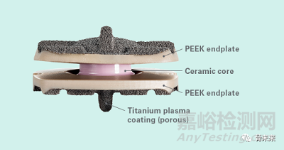 NuVasive 公司的Simplify 頸椎椎間盤是由兩個(gè)PEEK(聚醚醚酮)終板、一個(gè)陶瓷芯(可增強(qiáng)x射線可視化)和多孔鈦等離子涂層組成。植入物有多種尺寸可選,從低椎間盤最低可用高度(4 mm)開始,以更好地匹配患者解剖結(jié)構(gòu)并保護(hù)椎間小關(guān)節(jié)。