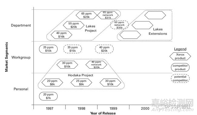 技術(shù)路線圖 (technology roadmap) ,該方法描述與正在考慮開發(fā)的產(chǎn)品相關(guān)的各種技術(shù)的預(yù)期實(shí)用性和未來應(yīng)用性,它使得技術(shù)開發(fā)和產(chǎn)品規(guī)劃相協(xié)調(diào)。這一方法已經(jīng)被摩托羅拉、飛利浦、施樂和其他快速發(fā)展的技術(shù)行業(yè)中的領(lǐng)先者所采用。它對(duì)于規(guī)劃哪些關(guān)鍵功能元件已經(jīng)被詳細(xì)了解的產(chǎn)品尤其有效。