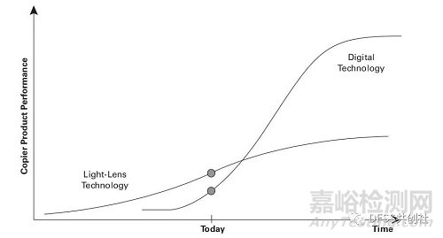 在技術(shù)密集型企業(yè),產(chǎn)品規(guī)劃的關(guān)鍵決策是什么時(shí)候在生產(chǎn)線上采用一種新的某種技術(shù)。例如,在文件處理類企業(yè),世紀(jì)之交的關(guān)鍵技術(shù)間題就是向數(shù)字圖像處理和打印的轉(zhuǎn)變。產(chǎn)品規(guī)劃要制定何時(shí)開發(fā)數(shù)字化產(chǎn)品,而不是基于光照-透鏡技術(shù)的另外一種產(chǎn)品,S形技術(shù)曲線