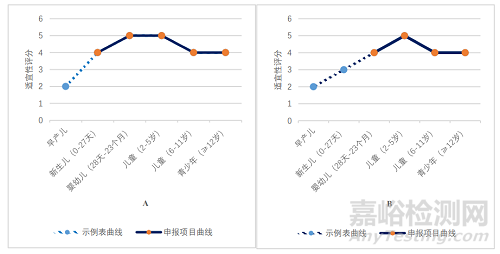 如圖 2A 所示,口服溶液劑在 0 歲新生兒至不滿 17 歲青少年年齡段內(nèi),適宜性表述為“4,適用性良好”和“5,最適宜和優(yōu)選劑型”。對(duì)照申報(bào)情況,在立項(xiàng)通過的 6 件口服溶液劑申請(qǐng)中,申報(bào)適應(yīng)證所涉及的最低起始年齡為 0 歲,最高起始年齡為 6 歲,基本符合給藥途徑/劑型與年齡的適宜性匹配關(guān)系。