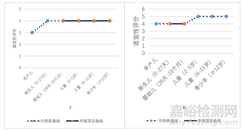如圖 2D 所示,凝膠劑在 0 歲新生兒至不滿 2 歲嬰幼兒年齡段內(nèi),適宜性表述為“4,適用性良好”。對(duì)照申報(bào)情況,在立項(xiàng)通過的 4 件凝膠劑申請(qǐng)中,申報(bào)適應(yīng)證所涉及的最低起始年齡為 0 歲,最高起始年齡為出生后 4 月齡,基本符合給藥途徑/劑型與年齡的適宜性匹配關(guān)系。