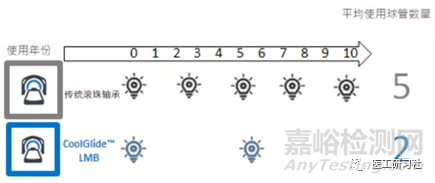 10年內(nèi)平均使用滾珠軸承球管和CoolGlide球管數(shù)量對比
