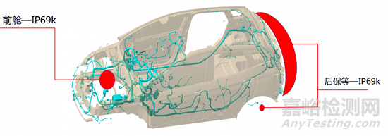 總體來講,左右縱梁形成平面以下室外線束連接器部分需要達(dá)到 IP69k,可通過增加必要護(hù)板遮擋或提高連接器的布置位置滿足防水要求。
