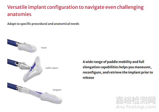 PASCAL Precision經(jīng)導(dǎo)管瓣膜修復(fù)系統(tǒng)的植入物是經(jīng)股靜脈通過輸送系統(tǒng)植入至二尖瓣位置,植入物的外觀和功能就像一個夾子。一旦進入心臟,夾子被用來抓住心臟中二尖瓣的兩個組織瓣葉,植入物將兩片瓣葉夾在一起,以減少二尖瓣反流。夾子到位后,將其與輸送導(dǎo)管分離,然后將輸送導(dǎo)管從體內(nèi)撤出。