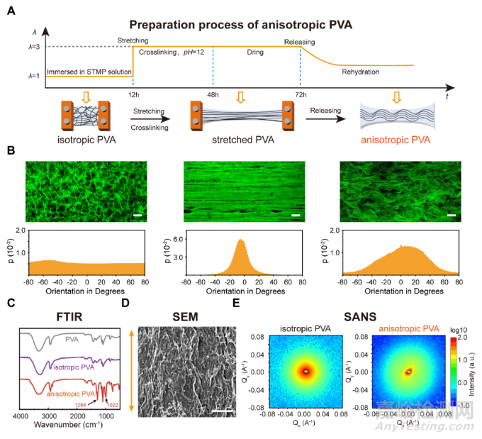 圖3、各向異性的PVA補片的制備過程和結構變化。