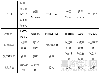 目前可以生產(chǎn)質(zhì)子治療裝置的國家有中國、德國、比利時(shí)、美國、日本等。根據(jù)技術(shù)路線、束流類型、治療室配置和機(jī)架方案,我們對(duì)市場上現(xiàn)有的質(zhì)子治療解決方案進(jìn)行了統(tǒng)計(jì),詳情見表1。