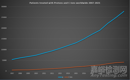 圖2-全球接受質(zhì)子(P)和碳離子治療(C-ion)的患者統(tǒng)計(jì)