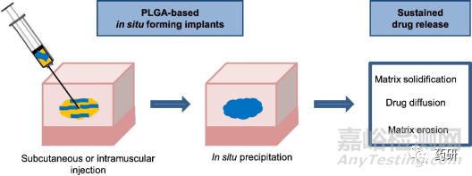 利用PLGA或PLA聚合物的技術(shù)通常涉及”原位形成植入系統(tǒng)”(In situ forming implant systems):原位形成植入系統(tǒng)是一種新興的配方技術(shù),可以避免持續(xù)輸注或非常高頻率的注射。除了藥物輸送外,這些系統(tǒng)還適用于一系列生物醫(yī)學(xué)應(yīng)用,例如組織修復(fù)、細(xì)胞封裝、微流體和生物工程。