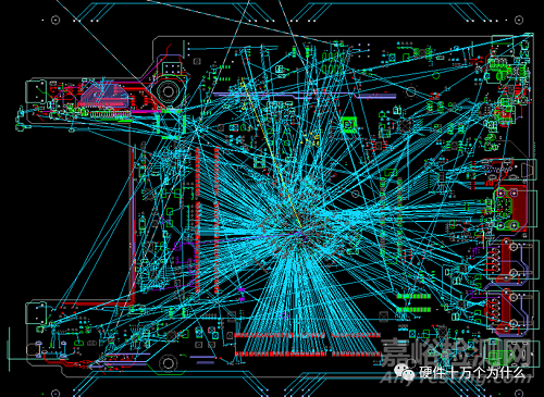 當原理圖網(wǎng)表導入到PCB設(shè)計軟件中時,所有的元器件相互連接的引腳都是通過“鼠線”連接的,這些并沒有網(wǎng)絡(luò)屬性意義。如下圖所示: