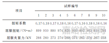 表2 A廠家螺栓+A廠家螺母摩擦性能的測(cè)試結(jié)果