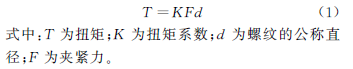 螺栓是用夾緊力將多個(gè)零部件結(jié)合在一起,從而達(dá)到緊固的目的。夾緊力測(cè)量困難,但夾緊力與扭矩有一定的線性關(guān)系,且扭矩容易測(cè)量,因此,可用控制扭矩的方法得到合適的夾緊力。扭矩系數(shù)、夾緊力和扭矩之間的關(guān)系如式(1)所示。