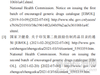 仿制藥在我國醫(yī)藥衛(wèi)生事業(yè)中發(fā)揮重要作用。2019年6月,國務(wù)院辦公廳發(fā)布的《關(guān)于印發(fā)深化醫(yī)藥衛(wèi)生體制改革 2019 年重點工作任務(wù)的通知》[1],在國家層面正式提出制定鼓勵仿制藥品目錄要求;同年10月,國家衛(wèi)生健康委員會(簡稱國家衛(wèi)建委)正式發(fā)布《關(guān)于印發(fā)第一批鼓勵仿制藥品目錄的通知》[2],共納入 33 個品種,首次提出我國臨床急需、鼓勵仿制的品種清單;2021年2月,國家衛(wèi)健委正式發(fā)布《關(guān)于印發(fā)第二批鼓勵仿制藥品目錄的通知》,共納入17個品種。
