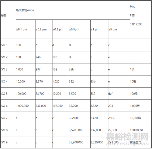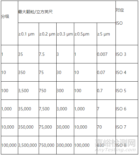 a表中的所有濃度都是累積的,例如,對(duì)于ISO 5級(jí),在0.3μm處顯示的10,200個(gè)顆粒包括所有等于或大于該尺寸的顆粒。