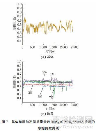 表2 添加不同質(zhì)量分?jǐn)?shù)MoS2的MoS2/Ni60A涂層的平均摩擦因數(shù)