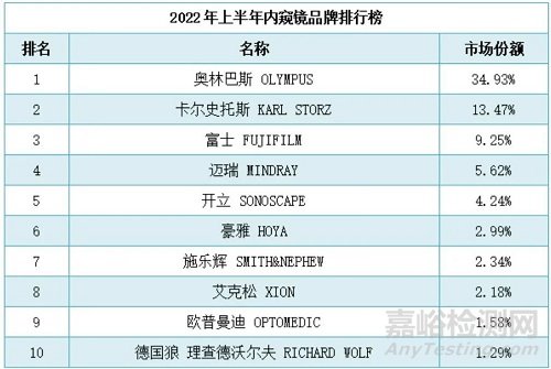 眾成醫(yī)械大數(shù)據(jù)平臺統(tǒng)計(jì)公布的2022年上半年內(nèi)窺鏡市場排行榜十 ,在其上半年銷售情況來看其中, 卡爾史托斯占比13.47%、富士 9.25%、 邁瑞 5.62% 、 開立 4.24 %、豪雅 2.99%、施樂輝 2.34%、艾克松 2.18%、歐普曼迪 1.58%、德國狼 理查德沃爾夫 1.29%,其中 邁瑞和開立分別位居榜四和榜五 。