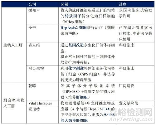 上述的7家生物人工肝公司其在技術(shù)路線上分為兩大類,一類是純生物人工肝形式,主要不同在于細(xì)胞的構(gòu)建/細(xì)胞系的選擇,另一類是組合型生物人工肝,主要區(qū)別在于生物反應(yīng)器(細(xì)胞的培養(yǎng))和細(xì)胞類型,如下表所示。