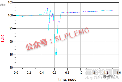 阻抗設(shè)計(jì)要求在100ohm+/-10%。從結(jié)果上看,并不能滿足要求。在連接器處到了85ohm。