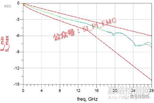 插入損耗在28GHz范圍內(nèi)都能滿足規(guī)范對(duì)插入損耗的要求。