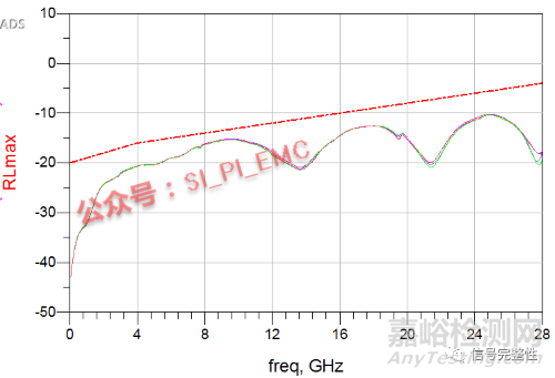 回波損耗在28GHz以內(nèi)都在回?fù)p指標(biāo)范圍以內(nèi),滿足規(guī)范要求。