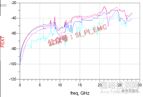 遠(yuǎn)端串?dāng)_,在28GHz以內(nèi)基本滿足-20dB以內(nèi)。