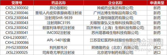 1. CDE新藥受理情況(01月17日)