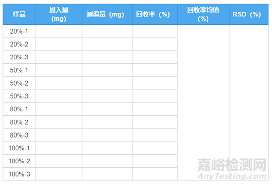 回收率結(jié)果報(bào)告表格推薦內(nèi)容如下: