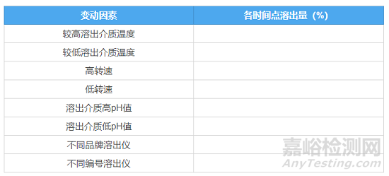 目的:考察溶出條件發(fā)生微小變化時(shí),各時(shí)間點(diǎn)溶出量的變化情況。