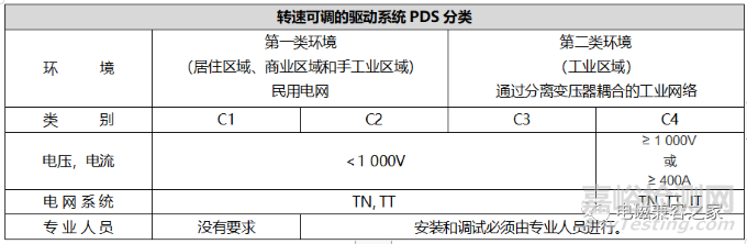 根據(jù)變速驅(qū)動(dòng)器的安裝位置和輸出電流,PDS產(chǎn)品分為四種類別(C1到C4):