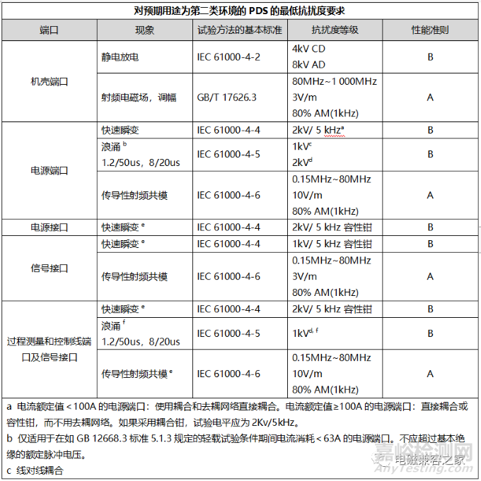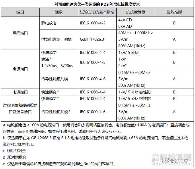 PDS設(shè)備應(yīng)能承受下表給出的抗擾度等級(jí)。