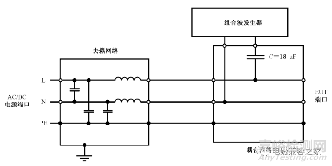 圖16 電源端口浪涌試驗(yàn)配置圖