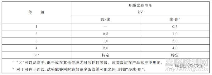 由于被測(cè)設(shè)備可能裝有壓敏電阻或空氣放電管等浪涌保護(hù)器件,或被測(cè)設(shè)備本身原因造成的電壓-電流特性呈現(xiàn)非線性的狀態(tài),因此,試驗(yàn)等級(jí)需從低到高逐步增加直至達(dá)到其要求的試驗(yàn)等級(jí),受試設(shè)備在所有等級(jí)的試驗(yàn)中均應(yīng)能夠達(dá)到測(cè)試計(jì)劃或標(biāo)準(zhǔn)中規(guī)定的要求。