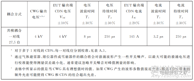 5.3.2 非屏蔽對(duì)稱的互連線的耦合/去耦網(wǎng)絡(luò)校準(zhǔn),適用于浪涌波形(1.2/50us組合波)。