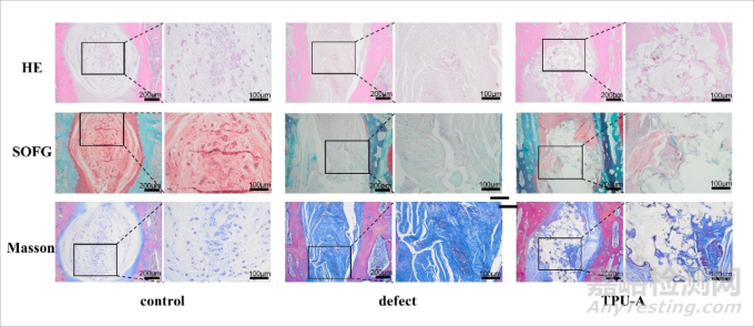 圖8 TPU-A植入兔子椎間盤后的組織學(xué)分析
