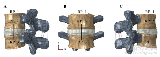 通過CT圖像對(duì)腰椎間盤同步建立有限元模型(圖4)。