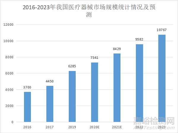 據(jù)前瞻產(chǎn)業(yè)研究院發(fā)布的《中國醫(yī)療器械行業(yè)市場需求預(yù)測與投資戰(zhàn)略規(guī)劃分析報告》統(tǒng)計數(shù)據(jù)顯示,2019年年我國醫(yī)療器械市場規(guī)模突破6000億元,未來5年(2019-2023年)均復(fù)合增長率約為14.41%%,并預(yù)測在2023年我國醫(yī)療器械市場規(guī)模將突破萬億元,達到了10767億元。