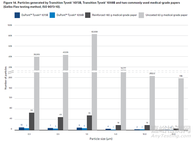 經(jīng)測試,相比醫(yī)療紙,杜邦™Tyvek®產(chǎn)生的微粒大大降低,對于無菌醫(yī)療器械的質(zhì)量水平及無菌呈現(xiàn)有極大幫助。