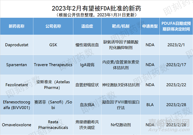 根據(jù)PDUFA的預期目標日期,預計2月,美國FDA將對5個創(chuàng)新藥物的批準做出監(jiān)管決定。