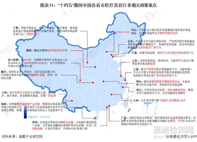 “十四五”期間,中國醫(yī)美行業(yè)監(jiān)管態(tài)勢趨嚴,各省市積極響應國家號召,結合各省市自身發(fā)展需求,積極展開醫(yī)療美容行業(yè)的監(jiān)管規(guī)范工作,制定不同的監(jiān)管規(guī)劃或發(fā)展規(guī)劃。