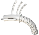 GORE TAG胸支內(nèi)假體旨在修復(fù)位于胸部最大動(dòng)脈(降主動(dòng)脈)的損傷。胸支內(nèi)假體由三根鎳鈦諾骨架(支架移植物)支撐的植入式織物管組成。每個(gè)支架移植物都有一個(gè)基于導(dǎo)管的輸送系統(tǒng)。