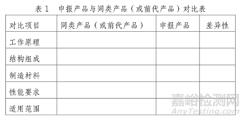 列表比較說(shuō)明申報(bào)產(chǎn)品與同類產(chǎn)品和/或前代產(chǎn)品在工作原理、結(jié)構(gòu)組成、制造材料、性能指標(biāo)以及適用范圍等方面的異同具體如表1 所示: